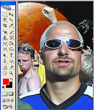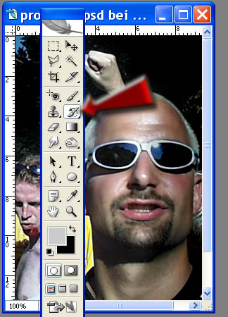 Magisches RadiergummiMit dem Magischen Radiergummi werden Bereiche mit einheitlicher Farbe durch einen Mausklick zu Transparenz gelöscht. |