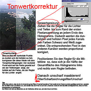 > Tonwertkorrektur können Sie den Tonwertbereich und die Farbbalance