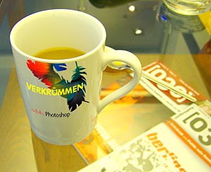 Objekte und Text verbiegen, krümmen1. Tasse als Hintergrundbild im Internet besorgen (© beachten!)2. Objektbild 1. Ebene transparenter Hintergrund 2.1. Objekt Bearbeiten > Transformieren-verkrümmen 3. Text schreiben, Verbiegen Icon klicken, Stil Wölbung |