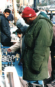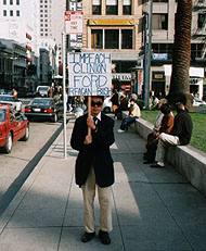 21.12.1998 ![]() 22.12.1998 Umzug in ein Nichtraucher-City-Hotel Nähe Union Square, (Chinesen ham wahrscheinlich das Hotel gekauft, sogar die Bibel ist chinesisch.) ![]() Nach diesem Eindruck in Chinatown kreuz und quer herumgestromert, 1 Peking-Ente verputzt, Museum "Gibts oder gibts nicht" in Fishermans Wharf. Unser Hotelzimmer ist ein bissel bissel feiner und wir fühlen uns wohler. Nur Qualmen müssen wir auf dem Klo. Auf der Straße haben wir oft Angst und Bettler und Stromer merken das irgendwie und laufen uns manchmal einige Meter hinterher. Wir müssen uns auch den glasigen Blick der Einheimischen angewöhnen, welche durch diese Leute einfach durchsehen, als wären sie Luft und werden nicht belästigt. Das geht dann auch sehr schnell. Wir ziehen verknitterte Klamotten und Turnschuhe an und tauchen mit einer Basecap bemützt einfach in die übrige grau/bunte Turi Ami-Masse unter. ![]() SF ist eine Panorama-Stadt...egal