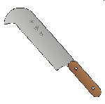 und sieht aus wie ein Hackmesser mit einer nach innen geschwungenen Klinge.