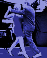 Die Gabriele am Handy scheint das zu bestätigen, weil Merker Berthold das Handy in die Hand drückt. "Do..do..do..Donnerstag" stottert bestätigend Berthold. "Donnerstag 20 Uhr im Serano" Drei Tage später ist Donnerstag und Berthold steht eine halbe Stunde vorher vor dem Tanzetablissement. Er hat sich in seinen ersten vernünftigen Anzug mit Weste geklemmt und wartet mit klemmenden Schuhen auf Gabriele. In einem langem schwarzen weichen Schlabbermantel rauscht die ein Kopf kleinere Tangolehrerein Gabriele auch schon um die Ecke. "Ich heiße Gabi, toll, dass du gekommen bist, wie hast du her gefunden?" stellt sich Gabriele vor. In ihrem Kopf schnurren Gedanken, das man ihr nun wieder so ein grünes Jüngchen geschickt hat und eilt vor Berthold durch die Türe. Bertholds Gedanken kreisen in eine entgegengesetzte Richtung. "Die Alte ist ja älter als meine Mutter." Pünktlich eine halbe Stunde später dudelt aus einer Ecke ein argentinischer Tango von der CD und in dem mattdunklem von wenigen Kugellampen beleuchtetem getäfelten Raum beginnen 3 Paare das Parkett zu zerkratzen. Nach drei vier Sätzen Einleitung über Achten und einfache Drehungen und Einhalten einer Tanzrichtung, und was überhaupt argentinischer Tango bedeutet, führt Gabriele Berthold auf die Tanzfläche und zeigt ihm die ersten Schritte Milonga und Tango Vals. Gabriele zeigt die ersten Schritte noch einmal und noch einmal und noch einmal. Ihr rechtes Bein mit ihrem strammen tangotrainiertem Oberschenkel schlängelt sich abgewinkelt aus einem schwarzem geschlitztem Rock effektvoll in Bertholds Hosentaschenhöhe. Es klappt nicht. Es gelingt nicht. Bertold bekommt keinen vernünftigen Takt und Tritt in seine Füße und stolpert serienweise über Gabis Beine. Er hat Probleme mit dem Gleichgewicht. Er hat Probleme mit der Koordination. Er hat Probleme, eine Frau mit entbößtem Oberschenkel im Arm zu halten. Einer Frau mit weichen runden Hüften und tollen gut proportionierten Beinen. Bertold kennt Repp, Hipp hop und selbsterdachtes hopsen in der Disko mit Mädels in Hosen, Hosen, Hosen und Profilturnlatschen mit markigen Fettsohlen. Berthold hat noch nie richtig mit einer Frau mit knallroten Lippen zusammen mit Körperkontakt getanzt. Er schwitzt, bekommt einen lippenfarbigen Kopf und schämt sich neidisch vor den anderen, die lässig semiprofessionell durch die kleine Tanzhalle zu den traurigen Tangoklängen schweben und komplizierte Figuren elegant zelebrieren. Zu allem Überfluß bekommt Berthold noch eine Erektion. Und was für eine. Exakt auf 8 Uhr würde man nach der Lage eines großen Zeigers sagen. Gabriele bekommt zwangsläufig mit, was bei Berthold die Stunde geschlagen hat und führt Berthold erst einmal zum Abkühlen an einen leeren Tisch. Bertholt platzt sich nieder, zückt ein Papiertaschentuch und erinnert sich abtupfend am Merkers Spruch: "Du bist steif wie meine Gichtoma". "Zum Teufel was mach ich nur hier" denkt er. Diese Art Körpersprache hatte er so fix nicht eingeplant und schaut unsicher zu Gabriele hinüber, die mit einer jungen blondharigen Frau in seinem Alter spricht. In dem Moment, wie er die junge kurzhaarige Blonde fixiert, geht die Erektion und auch die Transpiration schlagartig zurück . Nach etwa 10 Minuten, rauscht aus den Lautsprechern "Roter Mohn" im Original mit der Stimme der Chilenin Maria Martha Esther Alduante Del Campo, welche mal als Rosita Serrano bekannt war. Gabriele schnurrt wieder die Theorie der Schrittfolge wie eine tibetanische Gebetsmühle Berthold an den Kopf und beginnt mit ihm die Wiederholung der ersten Schritte der ersten Lektion. Schritt für Schritt, für Schritt. Mit gleichem Ergebnis: roter Kopf, Transpiration, Konfusion der Füße, feuchte Hände, Herzklopfen und Erektion. Der feinstoffliche Zwirn und die lockeren Boxershorts von Berthold können das wenig dämpfen. Berthold und Gabriele haben mehrere Probleme. Zum einen muß er den Abstand halten, um seiner Tanzpädagogin nicht seinen Zeiger spüren zu lassen was seine erotische Uhr für eine Stunde schlägt. Gleichzeitig will er den Abstand aber auch verringern, um seine Beule in der Hose nicht zu präsentieren. Gabriele will Abstand halten, um zu demonstrieren, welche Schritte wo gesetzt werden. Insofern sind sie eigentlich in ihrem Tun und Handeln fast konform. Bertholds Gleichgewichtssinn und seine Füsse wissen davon sehr wenig und dirigieren Bertholds Stundenzeiger immer präzise auf Gabrieles Venusberg auf Sechs Uhr. Nochmal und nochmal und nochmal knallt Berthold gegen Gabriele. Gabriele gibt erst einmal auf und berichtet einer gleichaltrigen Freundin empört verärgert von dem Malheur. "Der hat sowas von einem unverschämten Harten und lernt das nie! Der hat kein Gefühl, der hat keinen Spirit und Fable für Tango. Der ist ja sowas von unbegabt - dabei will der Schauspieler sein!" Gabrieles Freundin wirft einen Blick zu Berthold und bekommt große Augen. "Du, der ist mit meiner Tochter in eine Body Building Gruppe jeden Dienstag und Donnerstag seit einem Jahr am Anhalter Bahnhof. Der hat einen Body wie Adonis oder wie der Bred Dingsbumbs. Alle Mädels sind rein verrückt nach dem Knilch. Doch der duscht und fährt hinterher sofort nach Hause. Den nehm ich - Jürgen ist sowieso bis Ende des Monats in Frankreich. Das Problem, lass mich das lösen - bitte!" Bei Gabriele kommt in diesem Moment einen sagenhafter Futterneid auf und resolut lehnt sie den Vorschlag ab. Sie verflucht ihr Mitteilungsbedürfnis und steuert tapfer zu Bertholds Tisch. Das alles innerhalb einer Minute. Gabriele setzt sich zu Berthold und zündet sich eine Zigarette an. Sie frißt drei tiefe Züge und fragt danach unvermittelt Berthold, was er davon halten würde, jetzt hier und sofort die Tango-Tanzversuche ab zu brechen. Gabriele gurrt, sie kenne eine wahnsinnig innovative neue Tantratangotanzmethode, welche barfuß gelehrt würde. Das könne man hier nicht machen. Sie hätte aber bei sich zu Hause viel Platz dafür. Berthold sitzt 